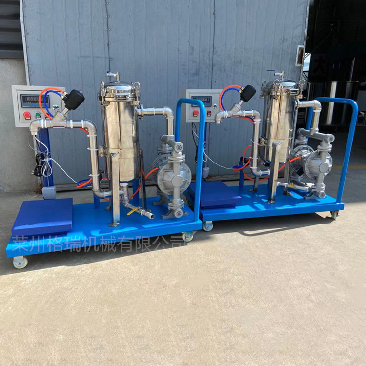 3.過濾機壓力一般調(diào)在0.1-0.3MPa比較合適,可通過回流管路或泵上回流閥來調(diào)節(jié),過濾壓力過高會損壞濾袋以及保護網(wǎng),需格外注意