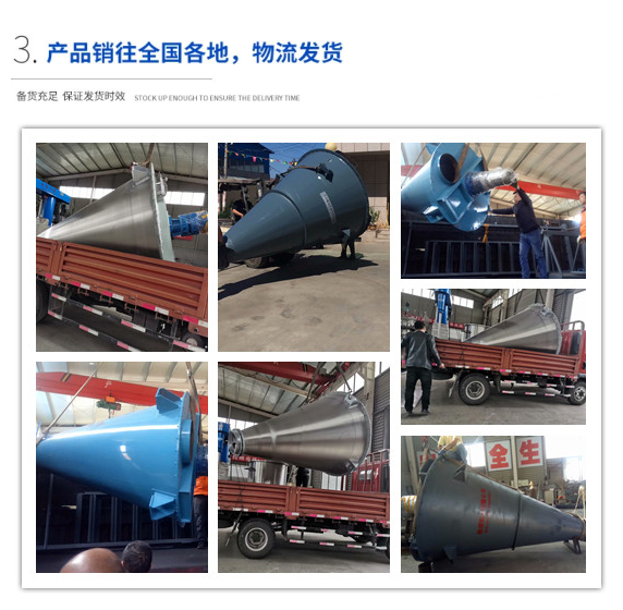 5、筒體部分:筒體為錐形結(jié)構(gòu),作乘物料用,使出料迅速、干凈、無積料,無出料死角。
