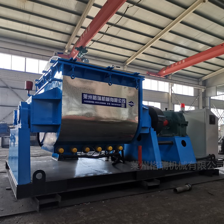 本機(jī)主要結(jié)構(gòu)是由混捏部分、機(jī)座部分、液壓系統(tǒng)、傳動(dòng)系統(tǒng)和電控系統(tǒng)等五大部分組成。混捏部分是由缸體、漿軸、墻板、缸蓋等組成。液壓系統(tǒng)由一臺(tái)液壓站來(lái)操縱大油缸,來(lái)完成啟閉功能,液壓系統(tǒng)由一臺(tái)液壓站來(lái)操縱油缸,來(lái)完成啟閉大蓋、閉合翻板等功能;電控系統(tǒng)有手動(dòng)、自動(dòng)電控系統(tǒng),由用戶任意選擇和要求,操作方便、可靠。傳動(dòng)系統(tǒng)由電機(jī)、減速機(jī)和齒輪組成、根據(jù)捏合機(jī)混捏鍋的型號(hào)配套電機(jī)。在傳動(dòng)過(guò)程中,可由電機(jī)同步轉(zhuǎn)速,經(jīng)彈性聯(lián)軸器至減速機(jī)后,由輸出裝置傳動(dòng)快漿,使其達(dá)到規(guī)定的轉(zhuǎn)速,也可由變頻器進(jìn)行調(diào)速。