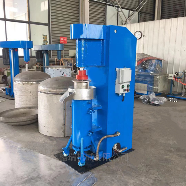 本機是經(jīng)過預(yù)分散和潤濕處理的液固混合物,由送料泵將物料由磨筒底部進料閥送入磨筒內(nèi)和磨筒內(nèi)的研磨介質(zhì)一起被高速旋轉(zhuǎn)的分散器所攪動,使物料中的固體顆粒和研磨介質(zhì)間產(chǎn)生強烈的剪切、撞擊,達(dá)到磨細(xì)顆粒和分散聚體的目的,研磨分散后的液固懸浮液通過磨筒頂部的分離器(篩網(wǎng)分離)流出。