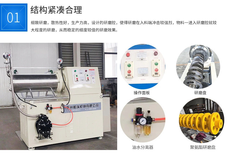 臥式研磨機相比較立式的砂磨機研磨細度高,效率高。筒體內(nèi)的旋轉(zhuǎn)主軸上裝有多層圓盤。當主軸轉(zhuǎn)動時,研磨介質(zhì)在旋轉(zhuǎn)圓盤的帶動下研磨壓入筒內(nèi)的漿料,使其中的固體物料細化合格的漿料穿過小于研磨介質(zhì)粒度的過濾間隙或篩孔流出。筒體部分備有冷卻或加熱裝置,以防筒內(nèi)因物料、研磨介質(zhì)和圓盤等相互摩擦所產(chǎn)生的大量的熱影響產(chǎn)品質(zhì)量,或因送入的漿料冷凝以致流動性降低而影響研磨效能。研磨介質(zhì)可用適當?shù)奶烊簧?,也可用粒度?/span>0.1~2毫米的人造玻璃珠。當給料粒度小于450微米時,排料粒度可達1微米以下。這種磨機在細化物料的同時,還有分散和混合作用,適于磨制染料、顏料、油漆涂料、***和其他懸浮液或膠懸劑等。